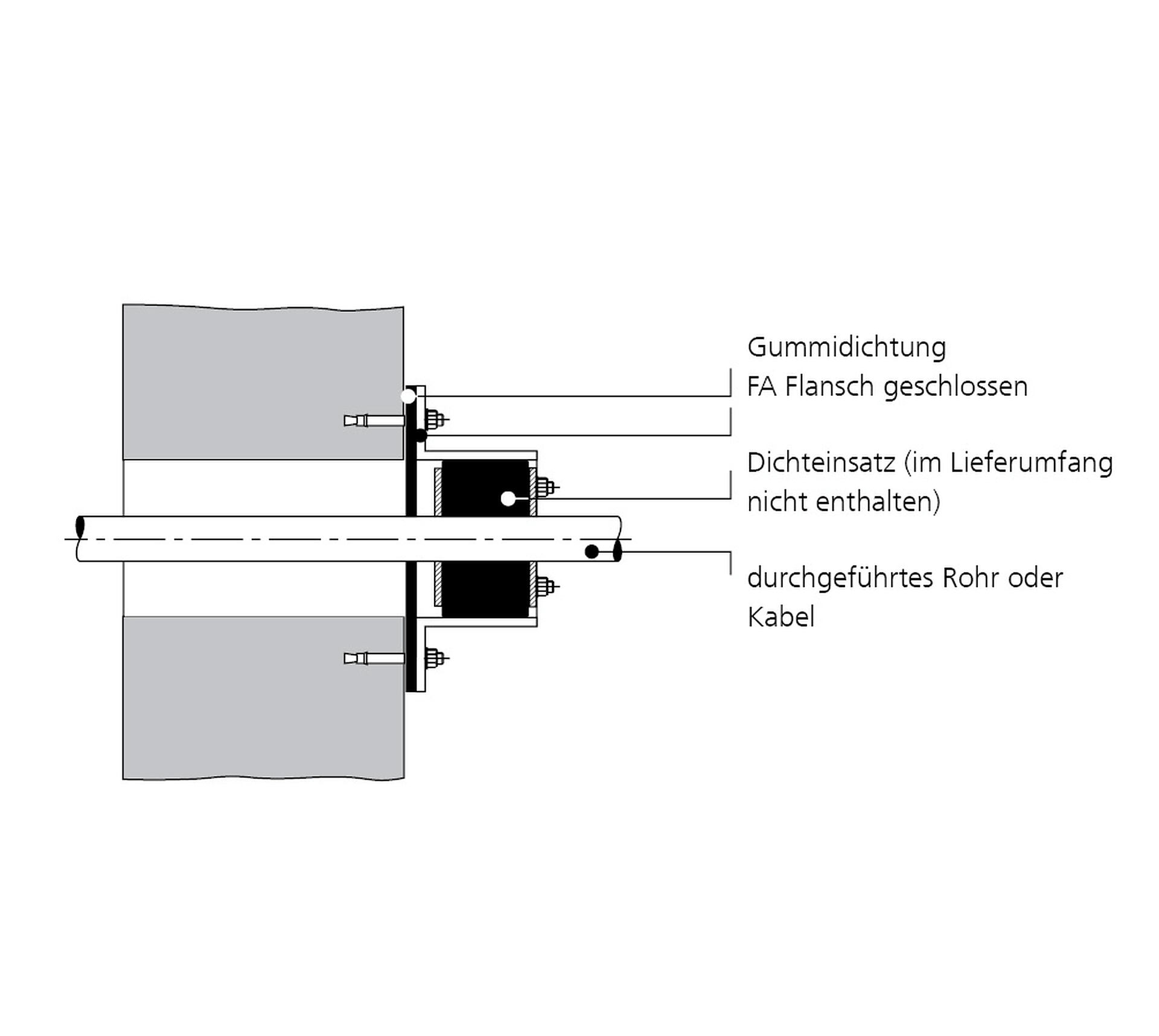 Der Flansch wird bis Futterrohr Øi 150 mm in quadratischer Ausführung und ab Futterrohr Øi 200 mm in runder Ausführung geliefert.
