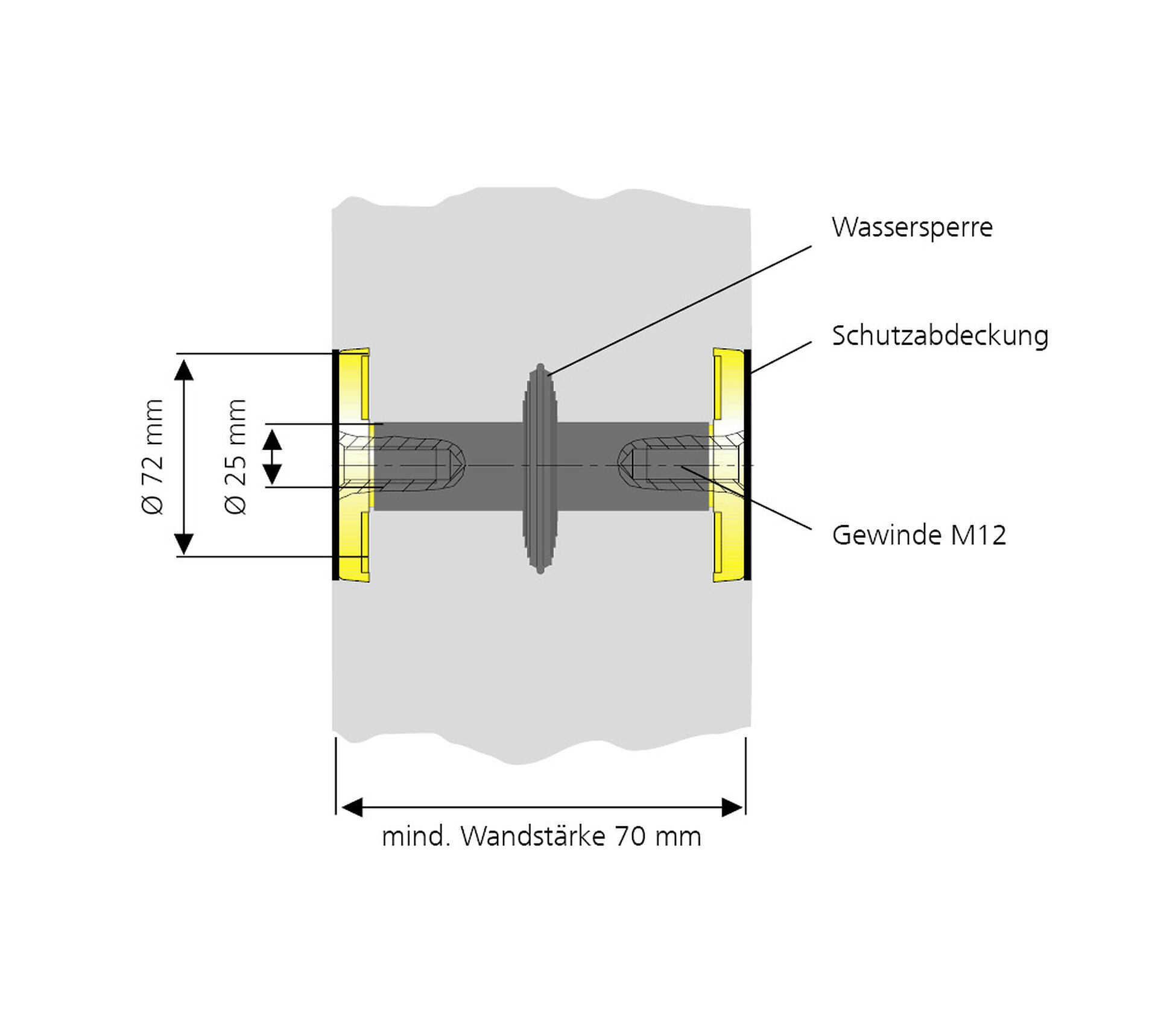 • Mindestwandstärke: 70 mm
