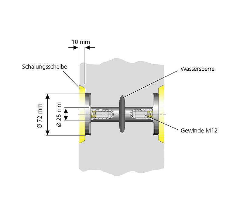 Für den schalungsbündigen Einbau in WU-Beton. Über das beidseitige Gewinde im Leiterkern können Erdungsanschlüsse vorgenommen werden.