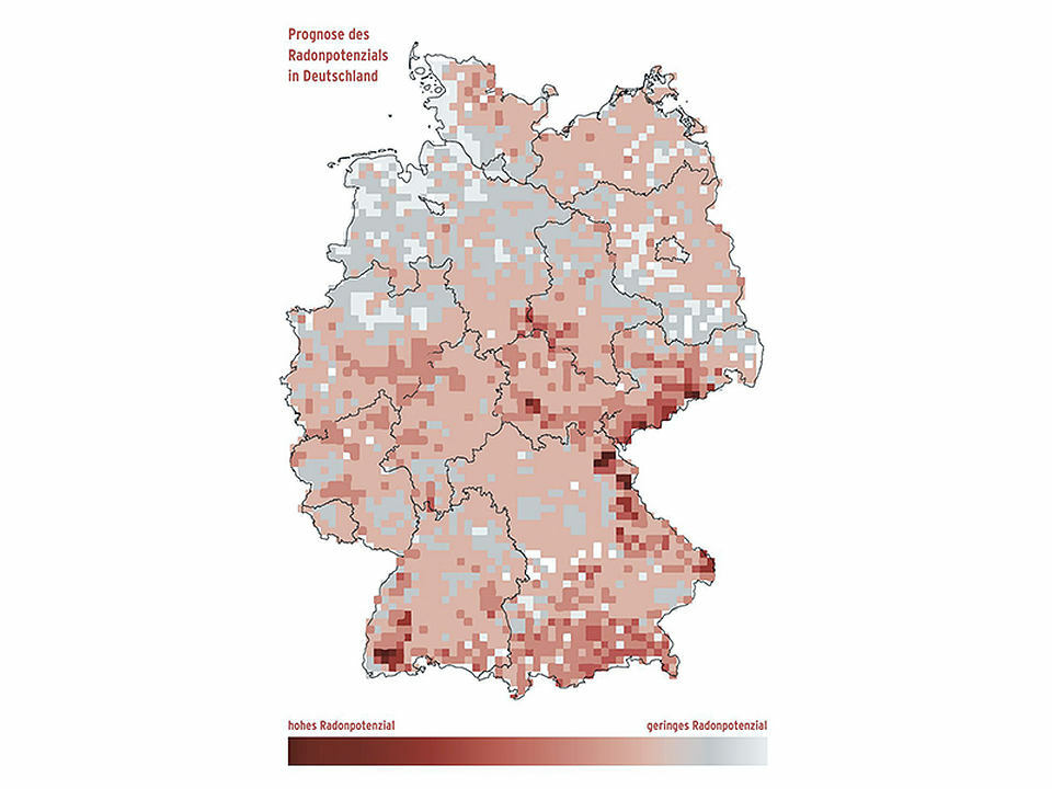 Das radioaktive Edelgas weist regional unterschiedliche Konzentrationen auf. Welche Gebiete von einer erhöhten Radonbelastung betroffen sein können, zeigt die Radonkarte Deutschlands vom Bundesamt für Strahlenschutz, kurz BfS aus dem Jahr 2004.