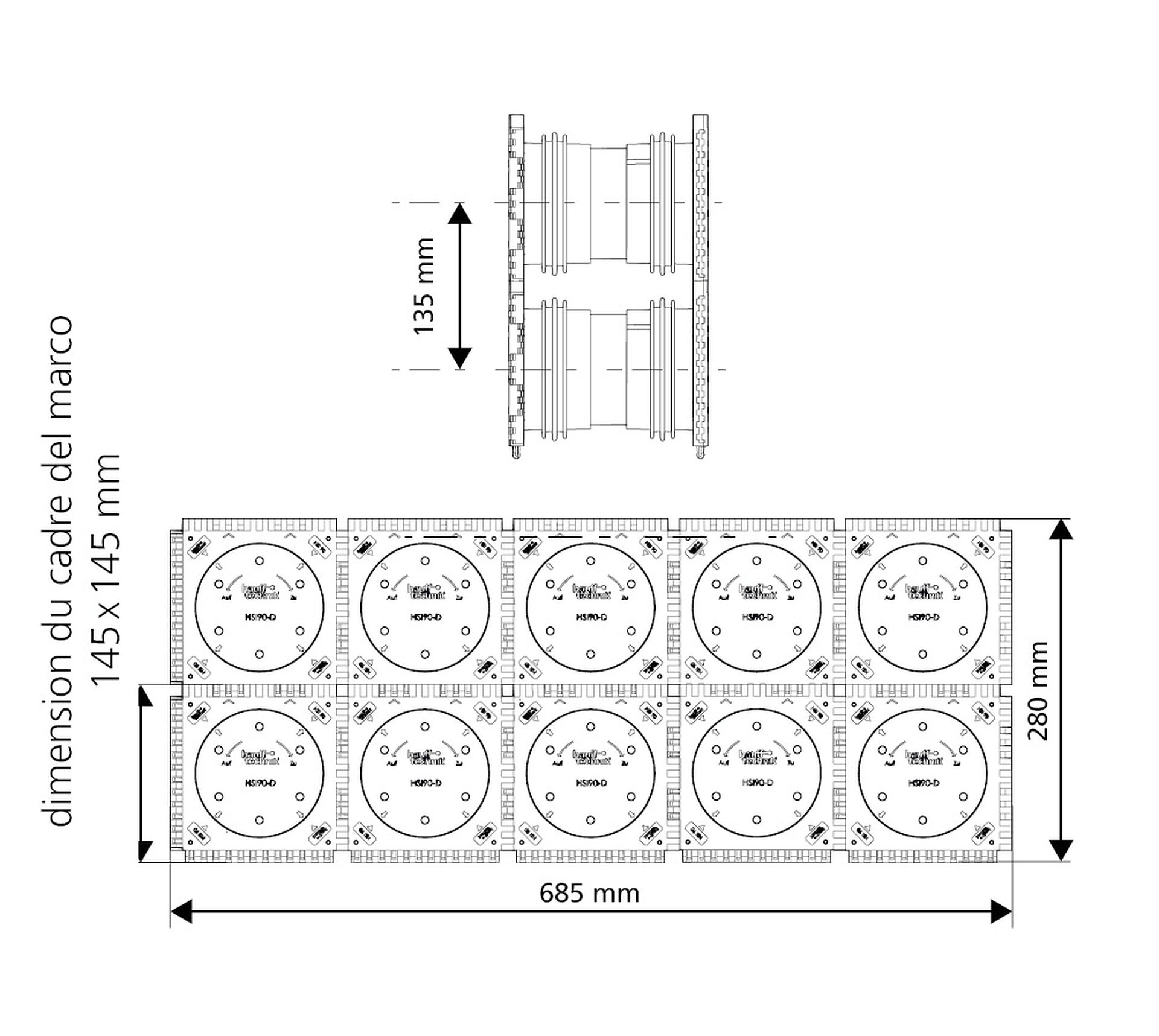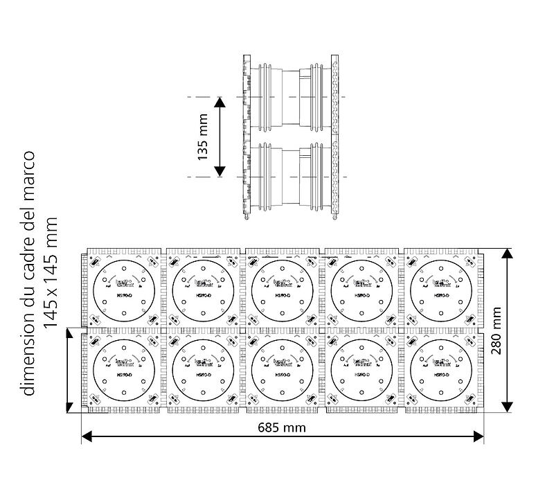 • Dimensions du cadre : 145 x 145 mm (par passage étanche)