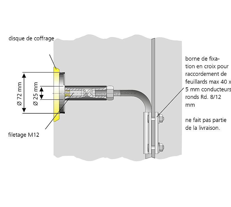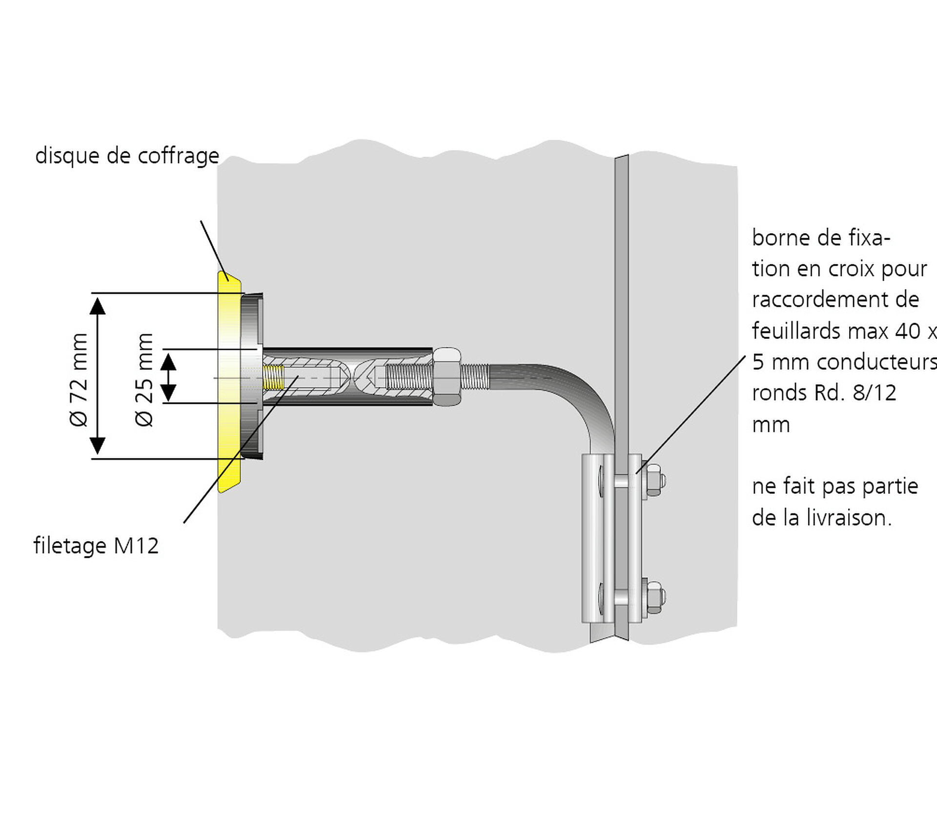 Pour connexion de mise à la terre avec barre en acier vissée pour un montage à fleur de coffrage. Il est possible de réaliser une connexion de mise à la terre par le biais du filetage dans le conducteur. Les HEA-S sont principalement utilisés dans le béton coulé en place.