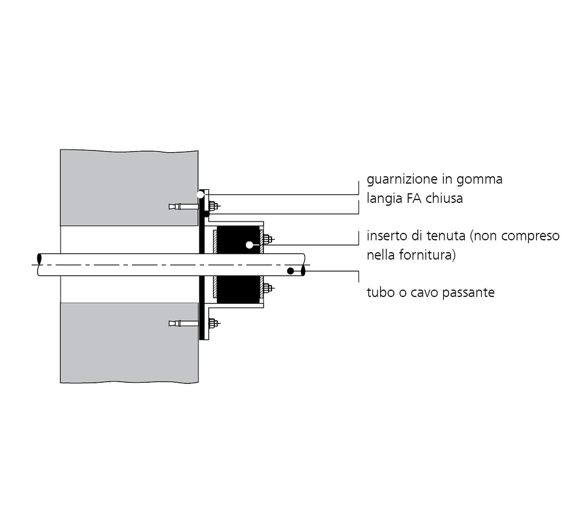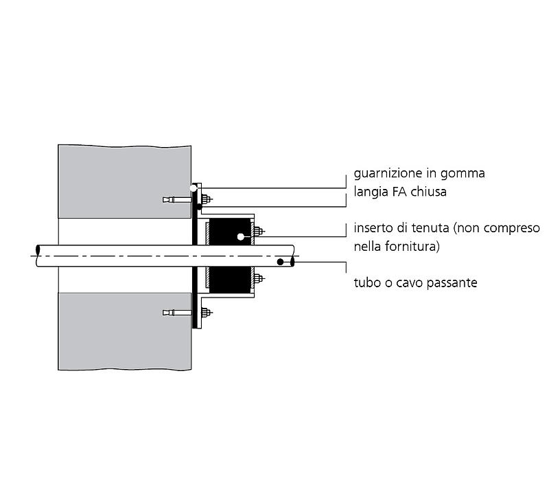 Il flangia viene fornito in versione quadrata fino a Øi 150 mm di tubo di alimentazione e in versione rotonda da Øi 200 mm di tubo di alimentazione.