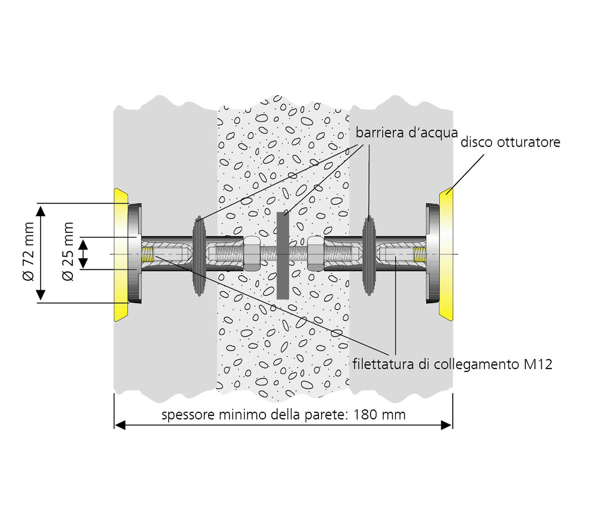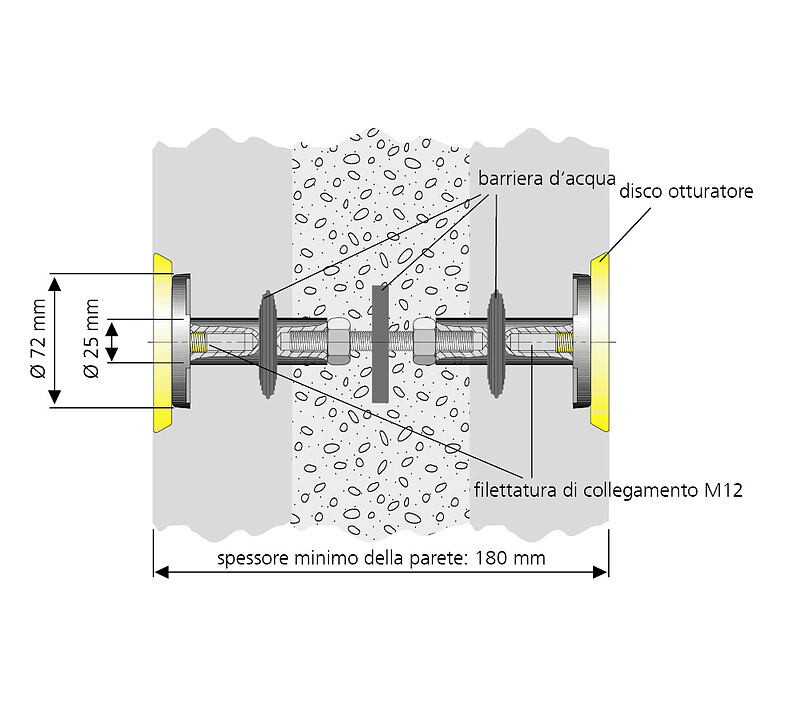 Per l'installazione in opere a elementi prefabbricati, garantisce la guarnizione affidabile degli elementi prefabbricati e del calcestruzzo gettato in opera. Sulla filettatura bilaterale al centro del conduttore è possibile realizzare delle connessioni di messa a terra.