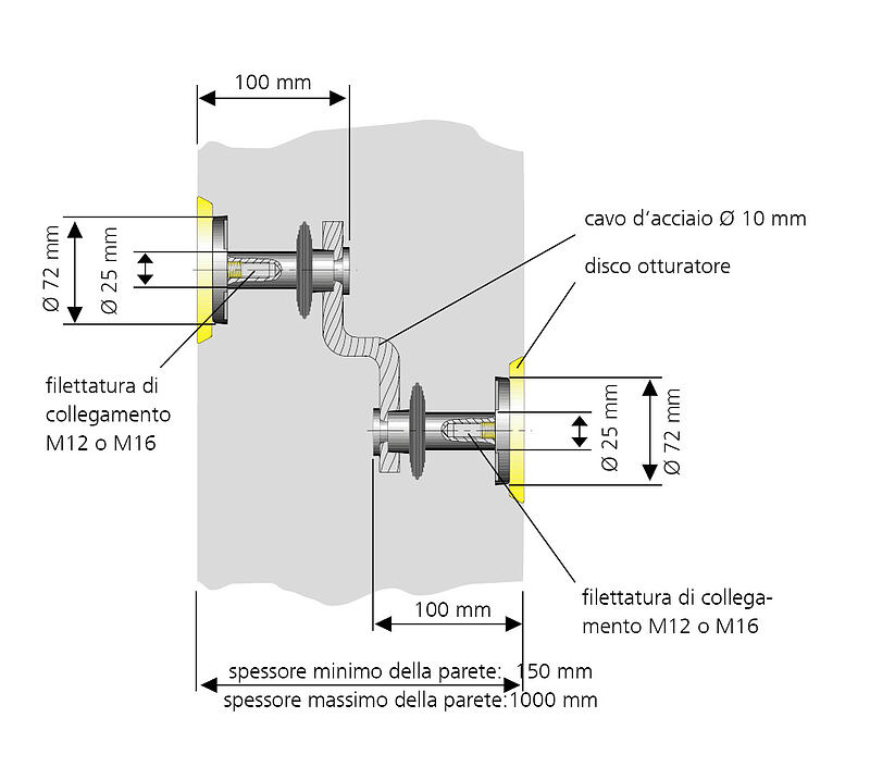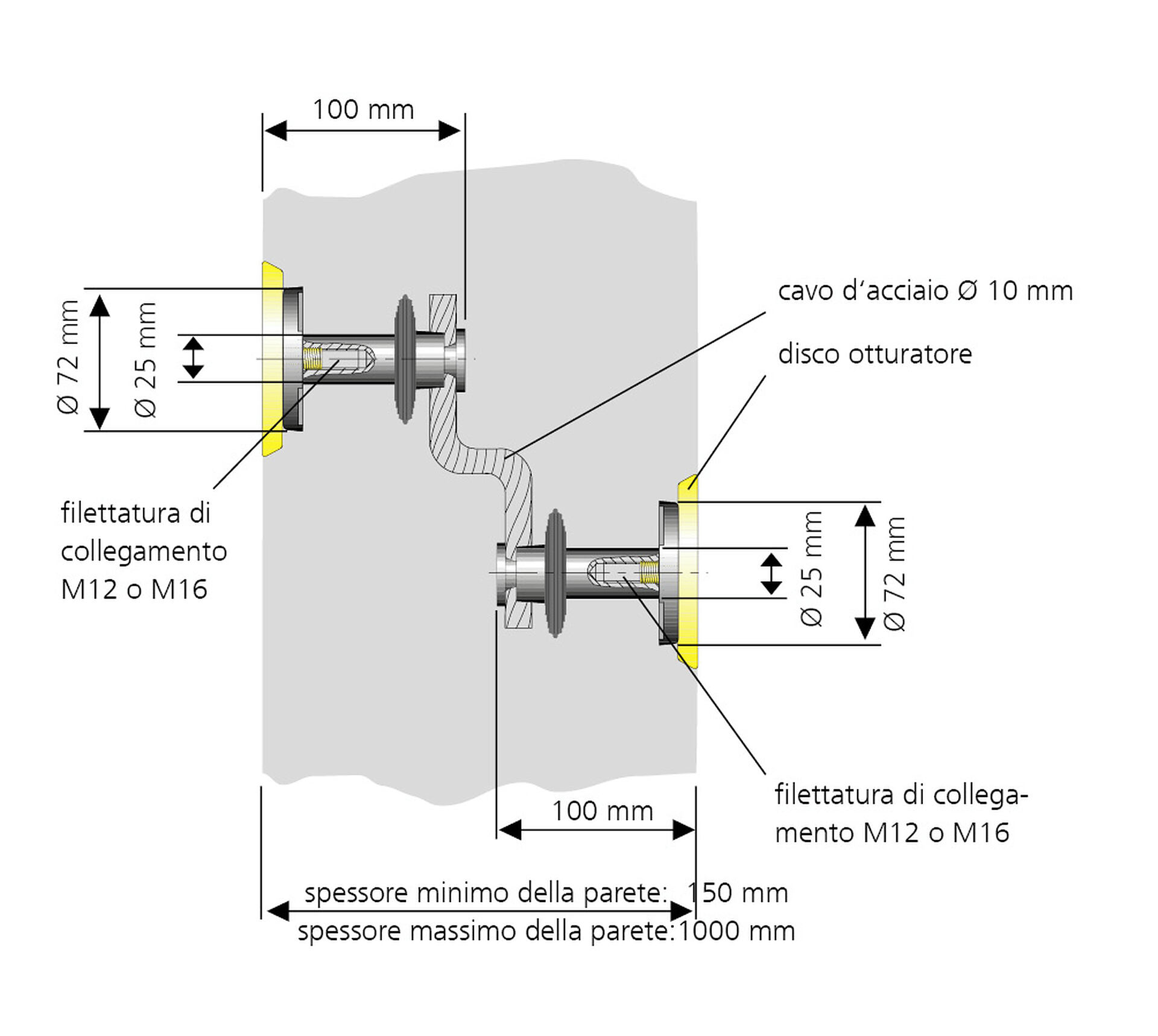 • filettatura di collegamento bilaterale impermeabile M12/M16 (foro cieco)