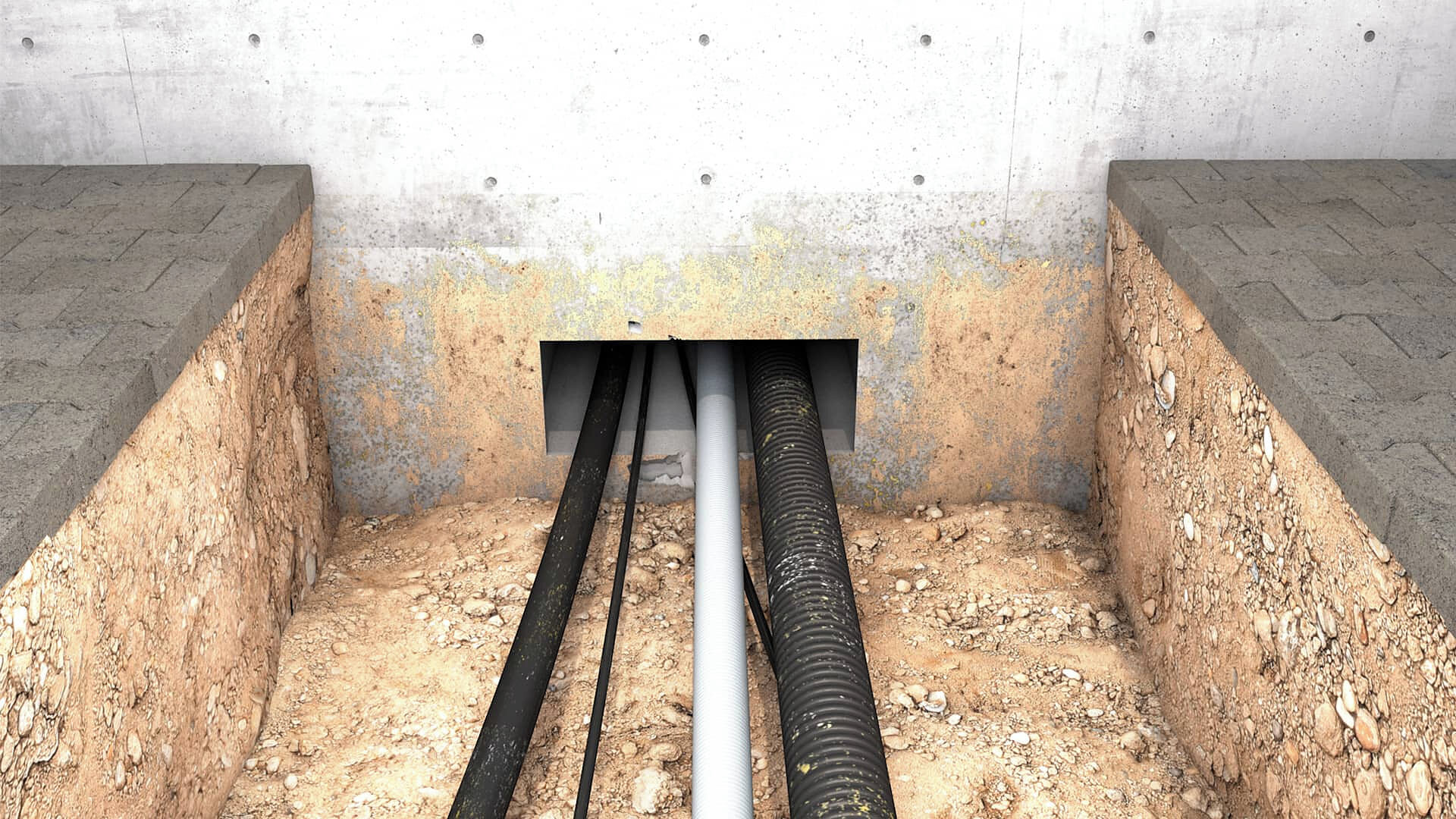 Jedes Gebäude besitzt in der Regel mehrere Ein- und Ausführungen. Diese gewährleisten sichere Schnittstellen für sämtliche Versorgungsleitungen. Die Gebäudeeinführung wird an unterschiedlichen Stellen vorgenommen. Oftmals befindet sich die Hauseinführung unterirdisch. Teilweise werden Gebäudedurchführungen allerdings auch in Wänden oder im Dach montiert. Dazu kommt, dass für diese einzelnen Bereiche oftmals unterschiedliche bauliche Voraussetzungen existieren. Aus diesen Gründen werden für die Gebäudeeinführung flexible und vielseitige Lösungen benötigt. Das Sortiment von Hauff-Technik deckt diese mit einer breiten Produkt-Palette voll umfassend ab.